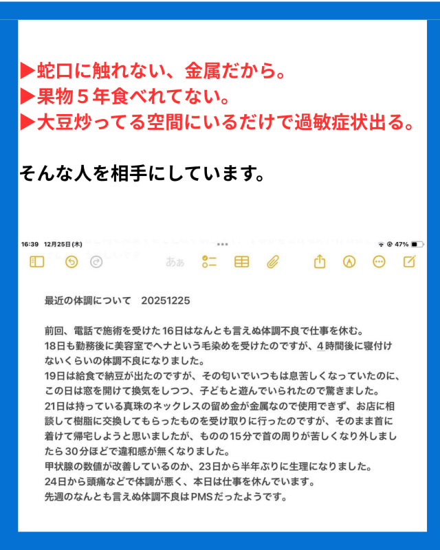 52歳、コロナ禍で病院にも行けず、食べ物だけでなく金属にも反応するようになり、どんどん深刻に。
