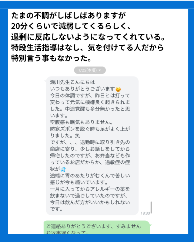 この青枠の女性は今、5年ぶりに果物食べれたと言っていました。朝も健やかに起きられるようになり。